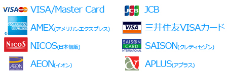 VISA、MasterCard、JCB、AMEXのマークがついているカード、あるいは、一覧にあるクレジットカードであればご利用いただけます。クレジットカード決済処理にあたっては、安全性を考慮し、SSL(データを暗号化技術)を使用しております。